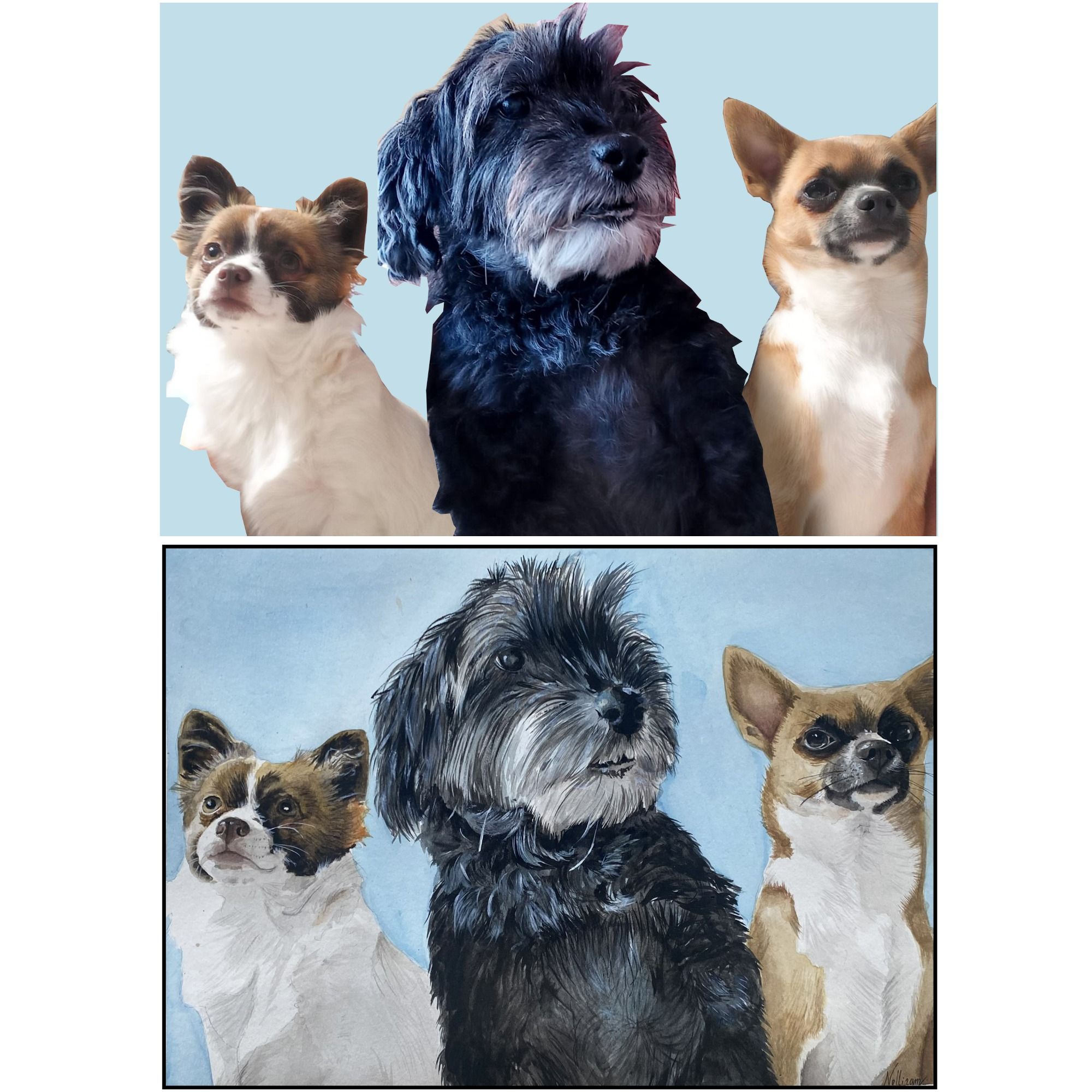 Les portraits à l'aquarelle sont réalisés sur papier épais à grain fin.